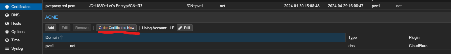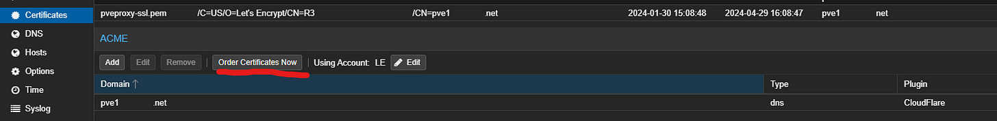 One of the really great things about this process is if what you’re using supports the ACME client you can get certs delivered directly to you for that resource. Proxmox and Proxmox Backup server support this.
