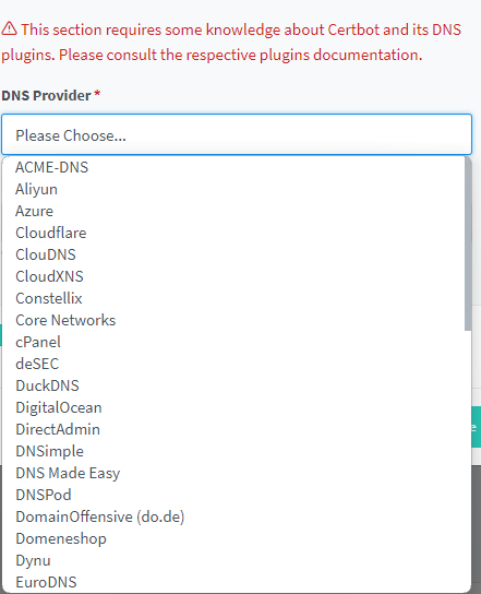 There’s a big difference here though. Unlike our manual command, we cannot perform the DNS challenge by ourselves. You must choose a provider that supports the API.