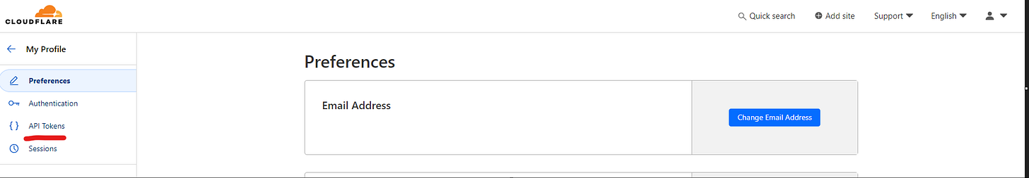 Every provider is different, for Cloudflare I needed an API key. This was also pretty simple. On Cloudflare under My Profile>API Tokens I created a token to use with my domains.