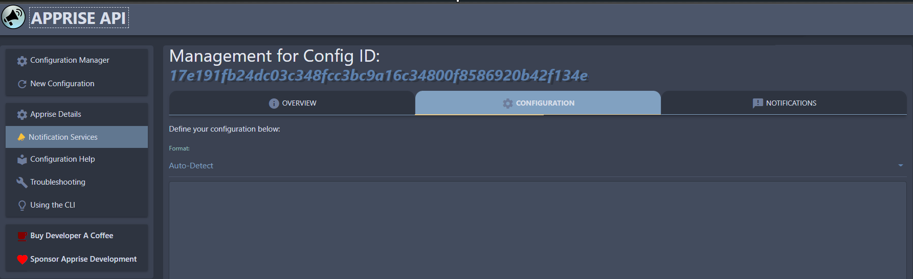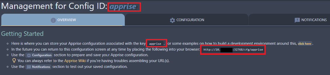 The apprise URL will be: http://[host:port]/cfg/[name of apprise config]