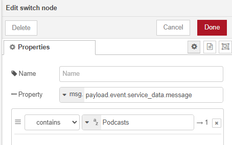 Now, in order for us to target this specific message, we will also use a “switch” node to filter further.