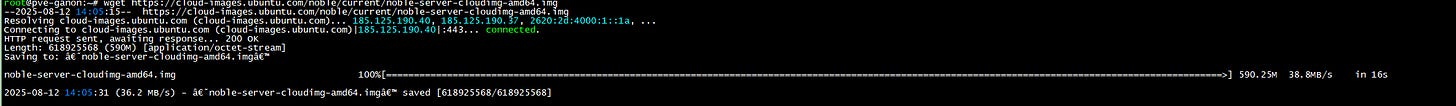 Ok, now we’re going to use the CLI for the next steps. PVE8+ does have an image upload and import feature but for whatever reason it makes the image not bootable.