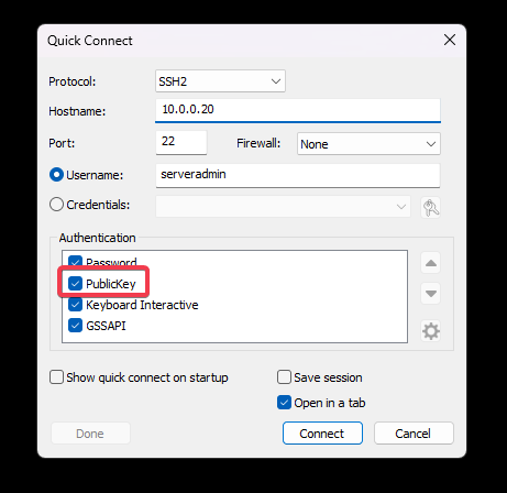 Now you’ll have a keypair. Once you load the public into Cloud-Init, in your SSH session you can use the private for authentication. The process should be similar for most clients.