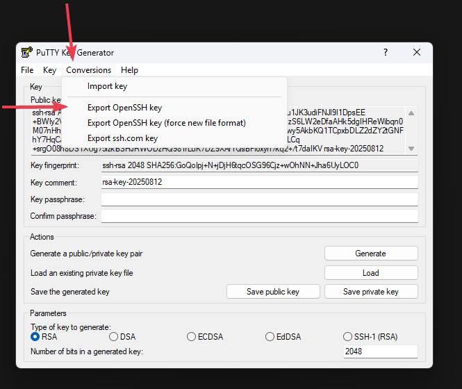 Just make sure to export the key as OpenSSH , and not the Putty ppk. Install Putty and open PuttyGen and click “generate”.