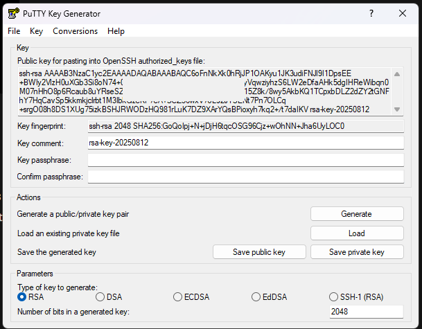 You can use OpenSSH on Linux to make a public/private keypair. Windows is my daily driver though so I used Putty because it’s easy.