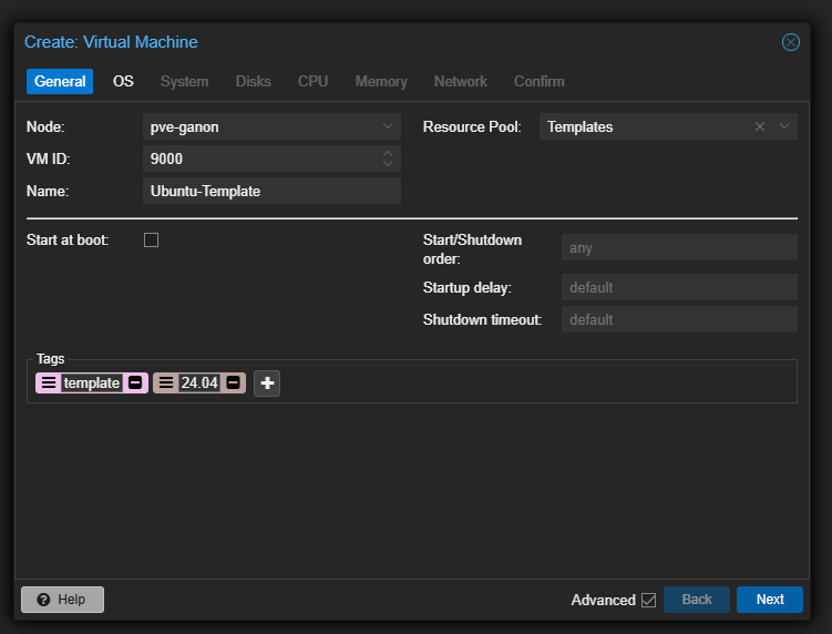 Every step of this can be done via CLI, but we’re going to do this in the GUI except for one step. Let’s go ahead and create a new VM, with an ID of 9000. I'm only picking a number that high to make it stand out.