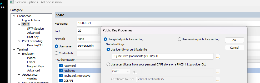 So I specified a cert, let’s see if that works. (I use Secure CRT)