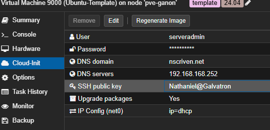 One last thing. If you change the Cloud-Init settings make sure you click “regenerate” to save the changes.