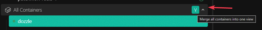 So the top one is the host the GUI is on, and the three “satellites” is where I have agents reporting. Right off the bat, it shows container stats, which is rad. Let’s search real quick, using the “search” under the lil Dozzle bug. This will return containers.