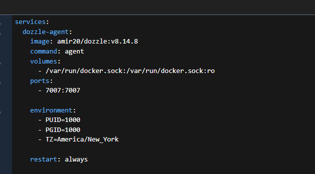 Pretty basic, though I changed the sock to be RO. I don’t have a need or want in my use case for any actions by Dozzle.