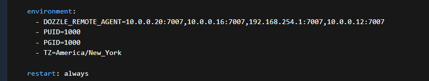 For the environment variables, see the remote agent section. The agents are comma separated. As of right now Dozzle doesn’t like starting if the agents aren’t reachable so maybe set them up first.