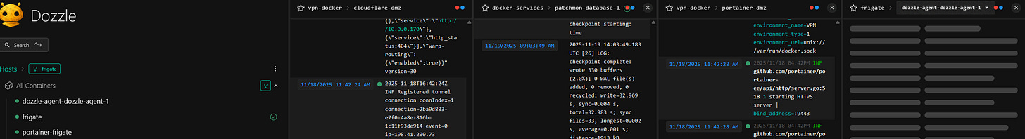 Ok so what is Dozzle? It’s a container (shocker) that simply streams the logs from other containers! It doesn’t store them, it streams. And you can search them all at once via regex, regular text, and I think sql or some such madness. And it also has a agent mode so you can streamline it all to one GUI.